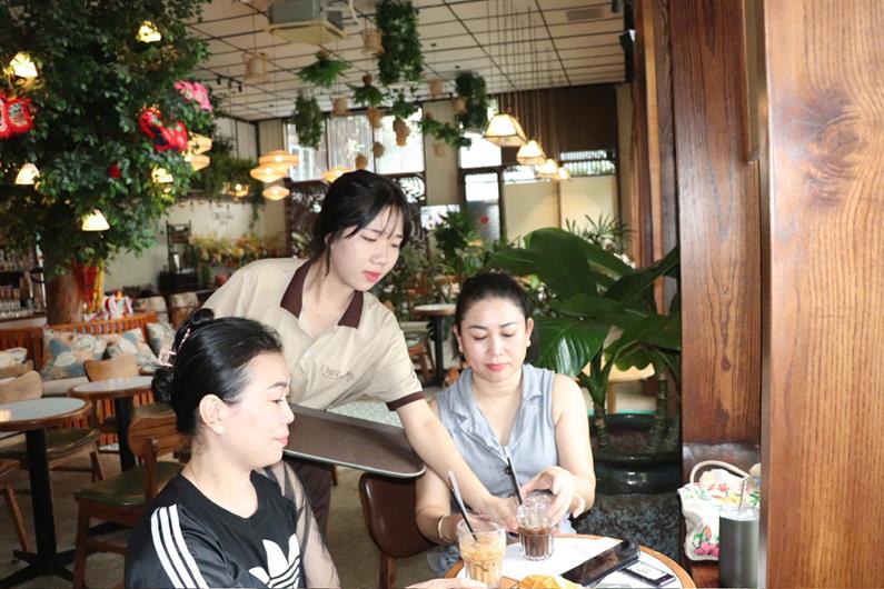 Sinh viên Võ Thị Tú Uyên trong giờ làm thêm