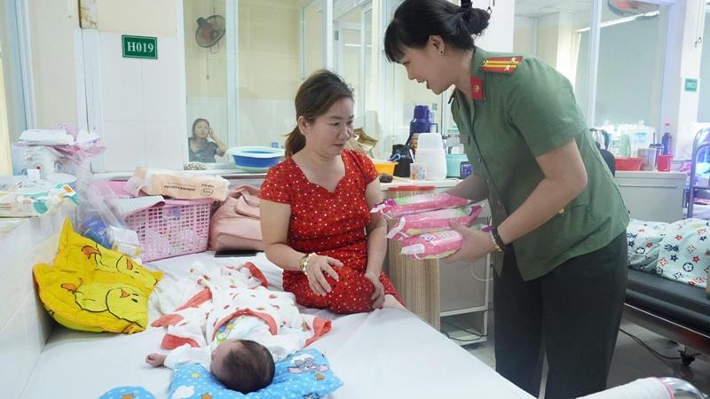 Cán bộ Công an tỉnh thăm, tặng quà cho bệnh nhi đang điều trị tại bệnh viện