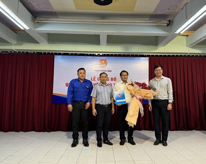 (CTT-Đồng Nai) - Sáng 14-3, Tỉnh đoàn đã lễ công bố quyết định bổ nhiệm chức danh giám đốc Nhà thiếu nhi tỉnh đối với ông Trương Hải Thi kể từ ngày 11-3-2024, thời gian giữ chức vụ là 5 năm.