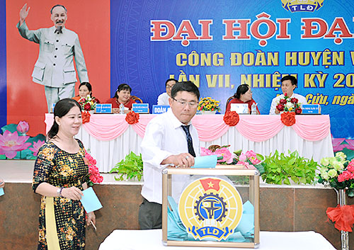 Các đại biểu bỏ phiếu bầu Ban Chấp hành LĐLĐ huyện Vĩnh cửu khóa VII, nhiệm kỳ 2018 - 2023.