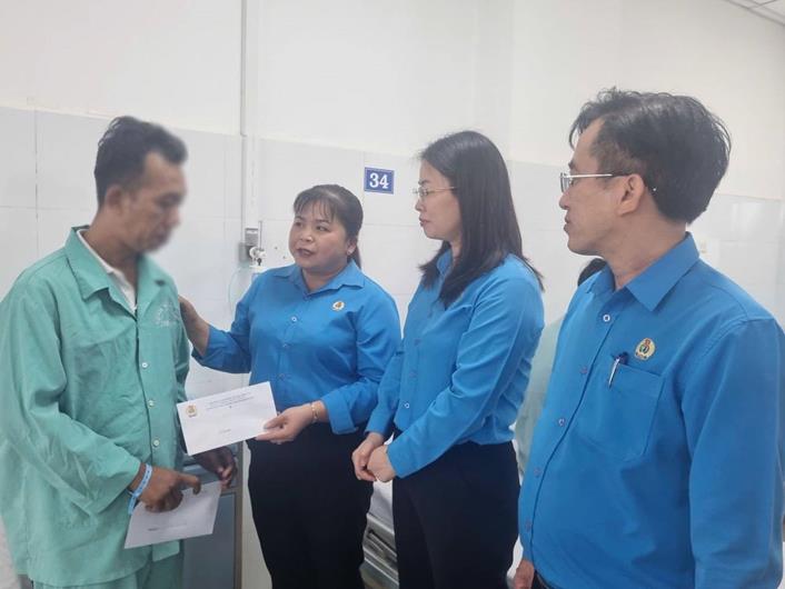 Theo đó, các cán bộ Công đoàn đã động viên 3 công nhân ổn định tinh thần, yên tâm điều trị vết thương; đồng thời cho biết, tổ chức Công đoàn sẽ luôn đồng hành, hỗ trợ và tham gia cùng các ngành chức năng tìm hiểu nguyên nhân sự việc để đảm bảo các chế độ chính đáng cho người lao động. Tổ chức mong muốn công nhân khi trở lại làm việc cần trang bị bảo hộ lao động để bảo vệ bản thân, tránh sự cố tương tự xảy ra về an toàn lao động. LĐLĐ tỉnh hỗ trợ mỗi trường hợp 5 triệu đồng/người. Ngoài ra, LĐLĐ huyện hỗ trợ mỗi trường hợp 500 ngàn đồng.