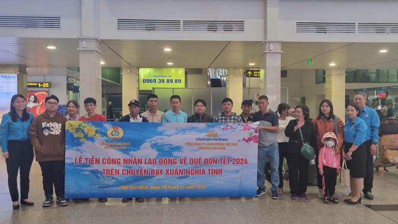 Thời gian về quê dự kiến ngày 25 và 26-1-2025 (tức ngày 26 và 27-12-2024 âm lịch). Điểm xuất phát từ Sân bay Tân Sơn Nhất và đến các Sân bay: Vinh, Nội Bài. Tổng LĐLĐ Việt Nam hỗ trợ miễn phí vé và mỗi đoàn viên, NLĐ thuộc đối tượng này được đi kèm không quá 1 người thân.