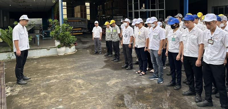Lãnh đạo, Công đoàn, công nhân Công ty TNHH Công ty cổ phần SYF Việt Nam một phút mặc niệm tưởng nhớ đến Tổng Bí thư. ảnh: CĐ