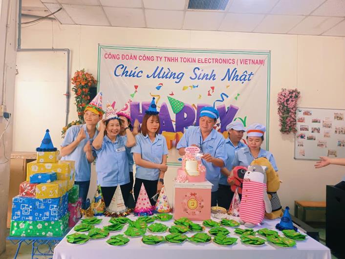 Chủ tịch CĐCS Công ty TNHH Tokin Electronics Việt Nam Phan Tới Thọ Hiệp cho hay, bình quân mỗi tháng, công ty có khoảng 90-95 người được tổ chức sinh nhật. Công nhân được thổi nến, cắt bánh, chụp hình lưu niệm và trao nhau lời chúc mừng thân thương nhất. Hoạt động này nhằm gắn kết tập thể, tạo sự mới mẻ trong hoạt động Công đoàn.