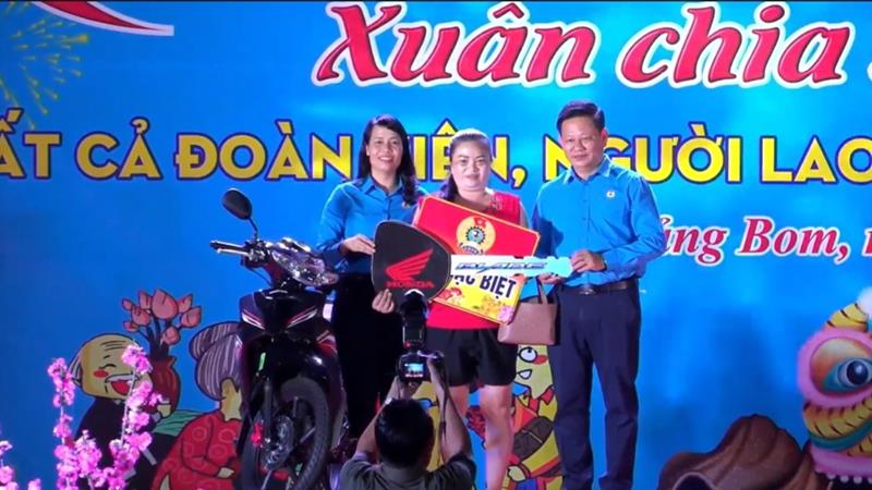 Tại H.Trảng Bom, năm nay Liên đoàn lao động huyện tổ chức 2 đêm Tết sum vầy - Xuân chia sẻ để phục vụ công nhân đón Tết xa quê và tặng gần 14 ngàn phần quà cho lao động khó hoàn cảnh khó khăn cùng nhiều phần quà bốc thăm trúng thưởng thu hút hàng ngàn người lao động háo hức tham gia. Chị Nguyễn Thị Mai, quê (Nghệ An) vui vẻ cho hay, năm nay chị không về quê ăn Tết, nên khi nhận được tình cảm của Công đoàn, chị rất cảm động. “Dù đón Tết xa quê nhưng tôi rất ấm lòng”.