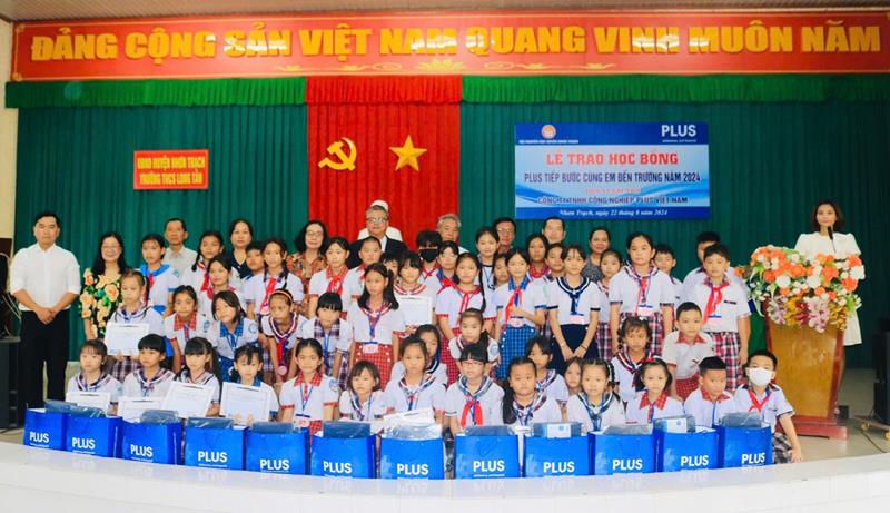 (CTT-Đồng Nai) - Công ty TNHH Công nghiệp Plus Việt Nam (Khu công nghiệp Biên Hoà 2, thành phố Biên Hoà) phối hợp với Hội Khuyến học tỉnh, Hội Khuyến học huyện Nhơn Trạch vừa trao tặng 50 suất học bổng Plus tiếp bước cùng em đến trường năm 2024 cho các em học sinh có hoàn cảnh khó khăn của huyện Nhơn Trạch.