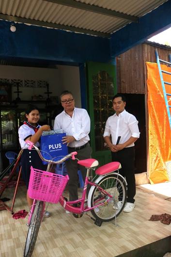 Ông Mihara Toshiya, Tổng Giám đốc Công ty TNHH Công nghiệp Plus Việt Nam đến nhà thăm hỏi, tặng xe đạp và quà cho 1 em học sinh có hoàn cảnh khó khăn