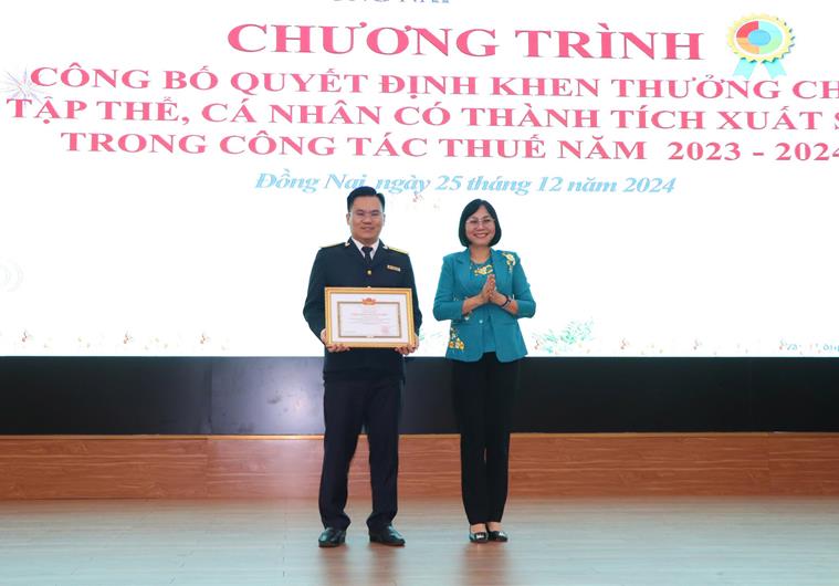 Phó Chủ tịch UBND tỉnh trao danh hiệu Chiến sĩ thi đua ngành Tài chính cho ông Trần Quảng Ninh, Trưởng phòng Tuyên truyền hỗ trợ người nộp thuế, Cục Thuế Đồng Nai