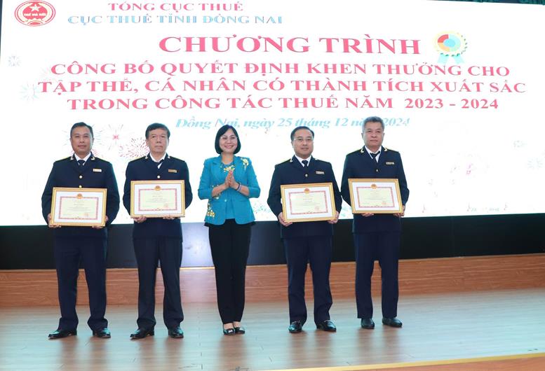 Dịp này, 5 tập thể và 30 cá nhân của ngành thuế, công an được Bộ Tài chính tặng bằng khen của Bộ Tài chính, giấy khen của Tổng cục Thuế. Trong đó, 1 cán bộ thuế đạt danh hiệu Chiến sĩ thi đua ngành tài chính năm 2024 vì đã có những đóng góp, thành tích xuất sắc trong công tác quản lý thuế.