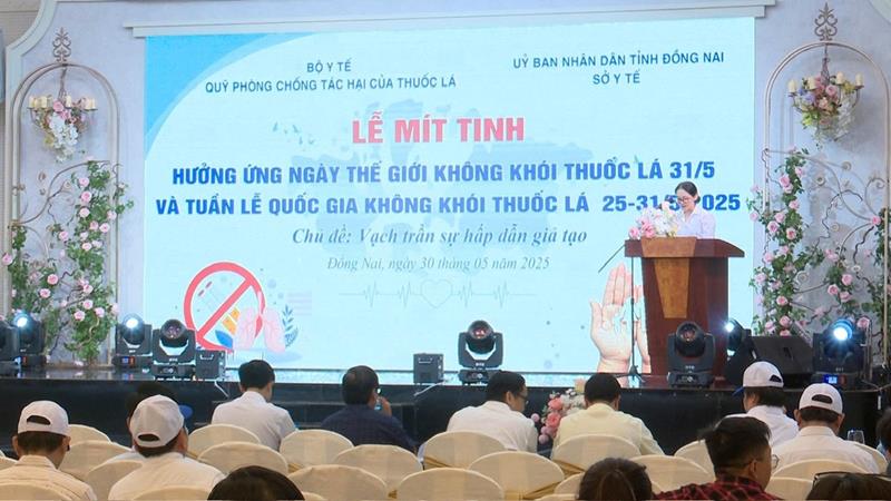 (CTT-Đồng Nai)- Phó Chủ tịch UBND tỉnh Nguyễn Sơn Hùng vừa tham dự lễ mít tinh hưởng ứng Ngày Thế giới không khói thuốc lá (31-5) và Tuần lễ quốc gia không khói thuốc lá (từ 23 đến 31-5-2025) do Sở Y tế phối hợp tổ chức.