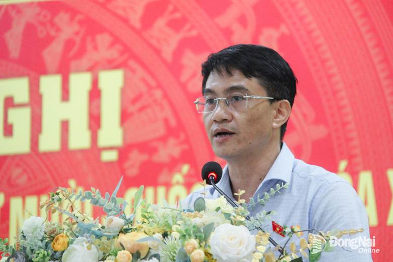 | Đại biểu Bùi Xuân Thống, Tỉnh ủy viên, Phó Trưởng đoàn chuyên trách Đoàn đại biểu Quốc hội tỉnh Đồng Nai phát biểu tại hội nghị. Ảnh: Trần Danh |