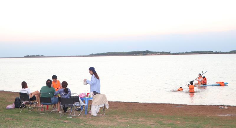 Khách tham quan cắm trại tại khu vực hồ Trị An