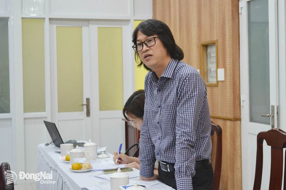 Nhà báo Nguyễn Sỹ Tuyên, Trưởng Cơ quan thường trú Thông tấn xã Việt Nam tại Đồng Nai phát biểu tại hội nghị. Ảnh: Phương Hằng