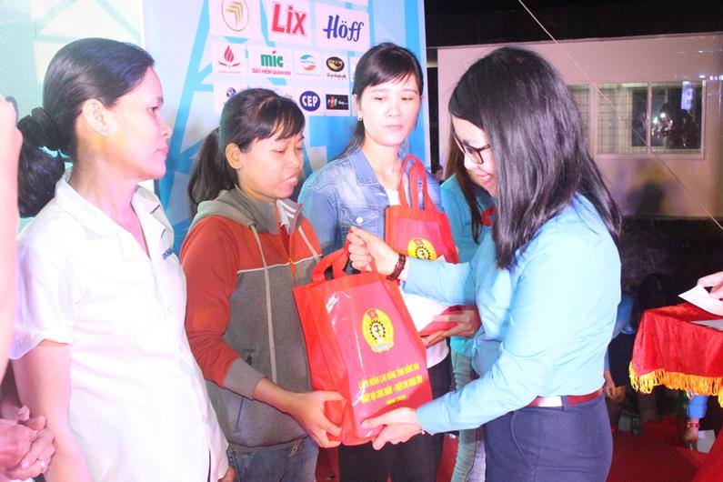 Chủ tịch Liên đoàn Lao động tỉnh Nguyễn Thị Như Ý tặng quà công nhân lao động khó khăn