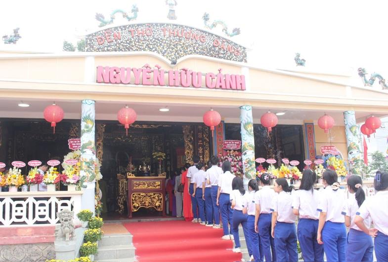 Các em học sinh tham quan, dâng hương tại di tích Đền thờ Nguyễn Hữu Cảnh năm 2024