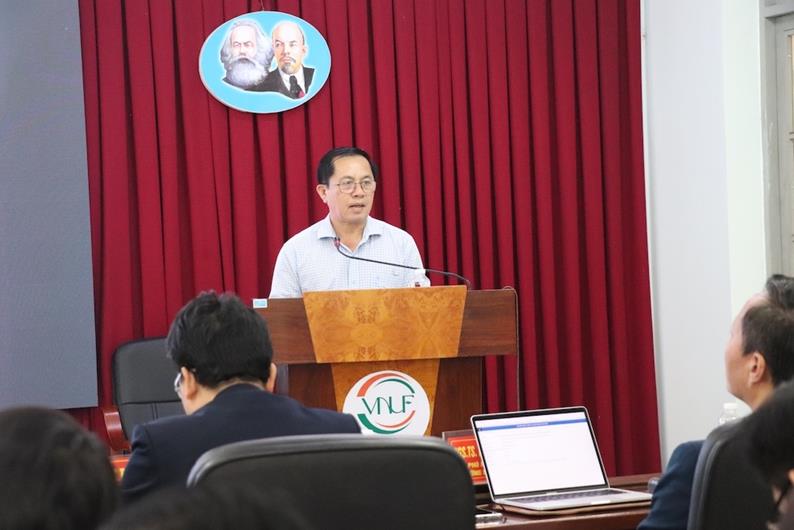 Phó Giám đốc Sở Nông nghiệp và Phát triển Nông thôn Lê Văn Gọi phát biểu tham luận tại hội thảo.