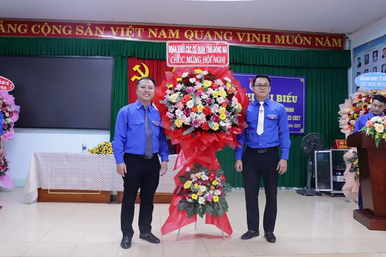 Đại diện Đoàn Khối các cơ quan tỉnh tặng hoa chúc mừng hội nghị