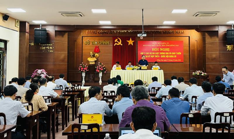 (CTT-Đồng Nai) - Sáng ngày 15-10, tại Sở Tài chính, Phó Bí thư Tỉnh ủy, Trưởng Đoàn đại biểu Quốc hội tỉnh Quản Minh Cường chủ trì hội nghị lấy ý kiến góp ý các dự án Luật cho ý kiến và thông qua tại kỳ họp thứ VIII, quốc hội khóa XV. Cùng tham dự có Phó Chủ tịch UBND tỉnh Nguyễn Thị Hoàng cùng lãnh đạo các sở, ngành, địa phương.