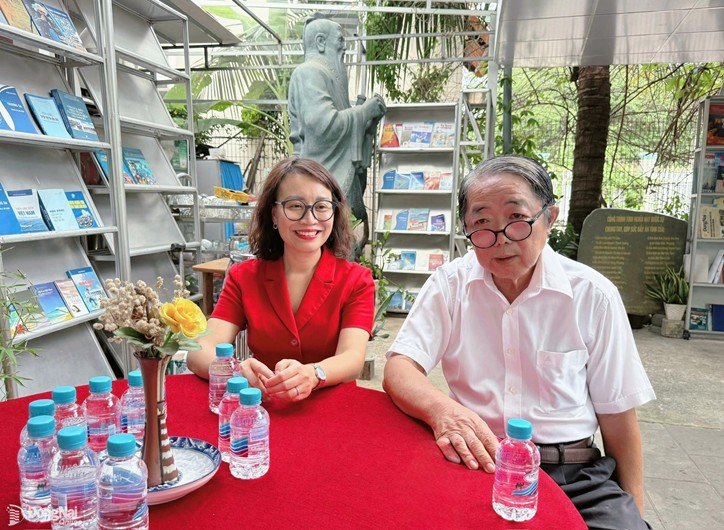Tổng Biên tập Báo và Phát thanh, Truyền hình Đồng Nai Nguyễn Thị Minh Nhâm trao đổi cùng nhà báo Mai Sông Bé, nguyên Giám đốc Đài PT-TH Đồng Nai. Ảnh: Hà Lê