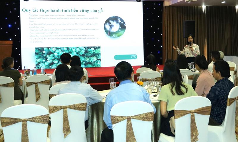 Lớp tập huấn cung cấp cho các học viên là chủ doanh nghiệp, cán bộ quản lý trong các công ty sản xuất gỗ tại các địa phương thông tin tổng quan về thực trạng ngành sản xuất, chế biến gỗ Việt Nam hiện nay, đề xuất những giải pháp để phát triển bền vững. Các chuyên gia, doanh nghiệp cũng trao đổi về Hệ thống chứng chỉ rừng Việt Nam, khả năng đáp ứng yêu cầu gỗ hợp pháp và tuân thủ Quy định chống phá rừng của EU (EUDR); hướng dẫn doanh nghiệp quy trình xây dựng bộ quy tắc ứng xử của mình, nhất là những nội dung liên quan đến phát triển bền vững, hợp pháp....