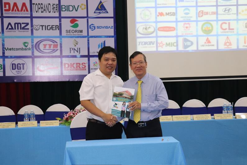 Hiệu trưởng Trường Đại học Đồng Nai Lê Anh Đức cùng đại diện doanh nghiệp thực hiện nghi thức ký kết biên bản ghi nhớ hợp tác tuyển dụng thực tập sinh