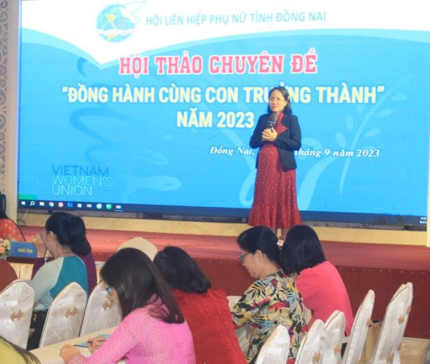 Vì vậy, việc đồng hành cùng con trưởng thành là vấn đề quan trọng cần được quan tâm hiện nay. Tại hội thảo, các đại biểu đã đánh giá khái quát những kết quả đạt được; những vấn đề đang đặt ra và phương hướng, nhiệm vụ trong giai đoạn tiếp theo về thực trạng, tác động của môi trường đối với công tác tuyên truyền, giáo dục, vận động, hỗ trợ phụ nữ tham gia giải quyết một số vấn đề xã hội liên quan đến phụ nữ. Trong đó có cách giáo dục, nuôi dạy con trong học tập, trong gia đình; trang bị kỹ năng ứng xử và đưa ra quyết định giải quyết vấn đề trong cuộc sống; xây dựng môi trường sống lành mạnh, an toàn cho con; phòng, chống bạo lực gia đình, bạo lực học đường, bạo lực trên cơ sở giới…