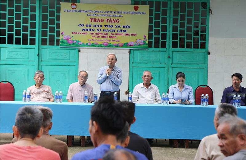 Dịp này, Chủ tịch Ủy ban MTTQ Việt Nam tỉnh Cao Văn Quang gửi lời tri ân đến Ban Trị sự Thất Phủ Cổ miếu Biên Hòa, Ban liên lạc người Hoa Biên Hòa trong 2 năm qua đã cùng Ủy ban MTTQ Việt Nam tỉnh hỗ trợ vật chất cho 15 cơ sở bảo trợ xã hội trên địa bàn tỉnh. Đồng thời, ghi nhận và biểu dương nỗ lực vượt khó của những người làm công tác xã hội trong quá trình chăm sóc người thuộc đối tượng bảo trợ xã hội. Đồng thời, mong muốn những người cao tuổi, trẻ em đang được chăm sóc, nuôi dưỡng tại 2 cơ sở này đoàn kết, yêu thương và đùm bọc lẫn nhau trong cuộc sống.