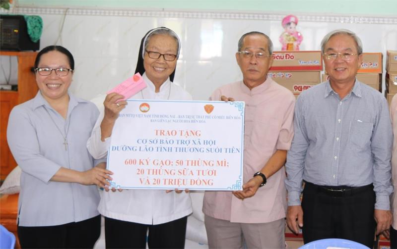 Trong đó, tại mỗi nơi đến thăm là: Cơ sở bảo trợ xã hội nhân ái Bạch Lâm (xã Gia Tân 2, huyện Thống Nhất) đang nuôi dưỡng, chăm sóc 130 người cao tuổi và 8 trẻ em; Cơ sở bảo trợ xã hội dưỡng lão tình thương Suối Tiên (xã Cây Gáo, huyện Trảng Bom) đang chăm sóc 130 người cao tuổi, đoàn đã tặng mỗi đơn vị 600kg gạo, 50 thùng mì gói, 20 thùng sữa và 20 triệu đồng.