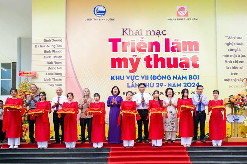 Các đại biểu cắt băng khai mạc Triển lãm Mỹ thuật Đông Nam bộ năm 2024
