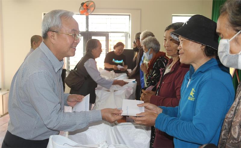 Chủ tịch Ủy ban MTTQ Việt Nam tỉnh Cao Văn Quang tặng quà người dân tộc thiểu số tại huyện Định Quán