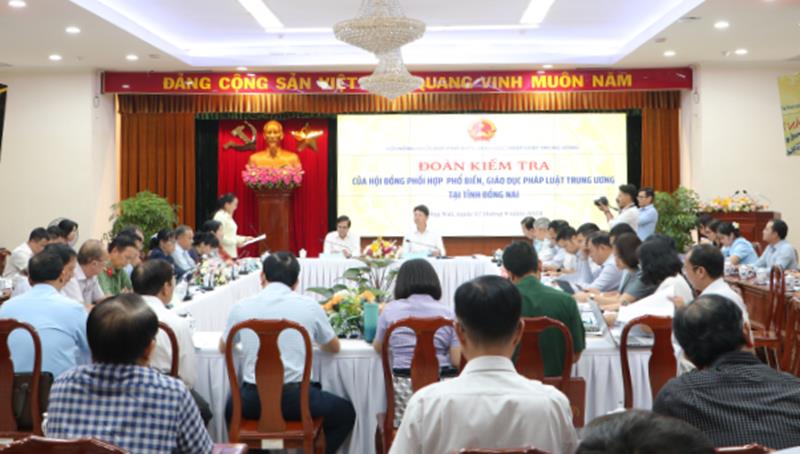 Phát biểu tại buổi làm việc với đoàn kiểm tra Trung ương, Phó Chủ tịch UBND tỉnh Nguyễn Sơn Hùng nhấn mạnh, qua buổi làm việc của đoàn kiểm tra Hội đồng Phối hợp PBGDPL Trung ương là cơ hội để Đồng Nai được hướng dẫn triển khai các phương hướng, nhiệm vụ và giải pháp nhằm nâng cao hơn nữa hiệu quả công tác PBGDPL. Do vậy, các ý kiến góp ý của đoàn kiểm tra sẽ được các thành viên của Hội đồng Phối hợp PBGDPL tỉnh, lãnh đạo UBND cấp huyện tiếp thu để có kế hoạch, giải pháp cụ thể trong thời gian tới.