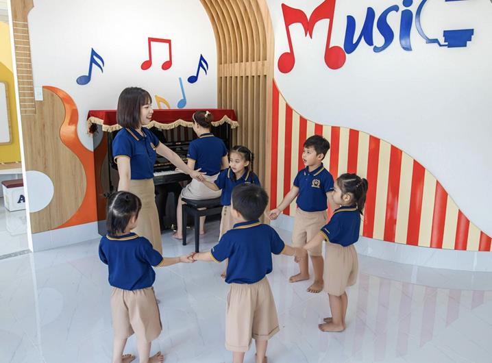 Học sinh Trường Mầm non Ngôi sao (thành phố Biên Hòa) trong giờ học âm nhạc. Đây là trường mầm non tư thục mới thành lập và đi vào hoạt động từ năm học 2024-2025