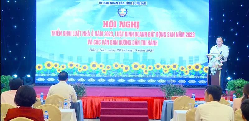 (CTT-Đồng Nai) - Ngày 28-10, UBND tỉnh tổ chức Hội nghị triển khai Luật Nhà ở năm 2023, Luật Kinh doanh bất động sản (BĐS) năm 2023 và các văn bản hướng dẫn thi hành. Chủ tịch UBND tỉnh Võ Tấn Đức, Phó Chủ tịch UBND tỉnh Võ Văn Phi, dự hội nghị.