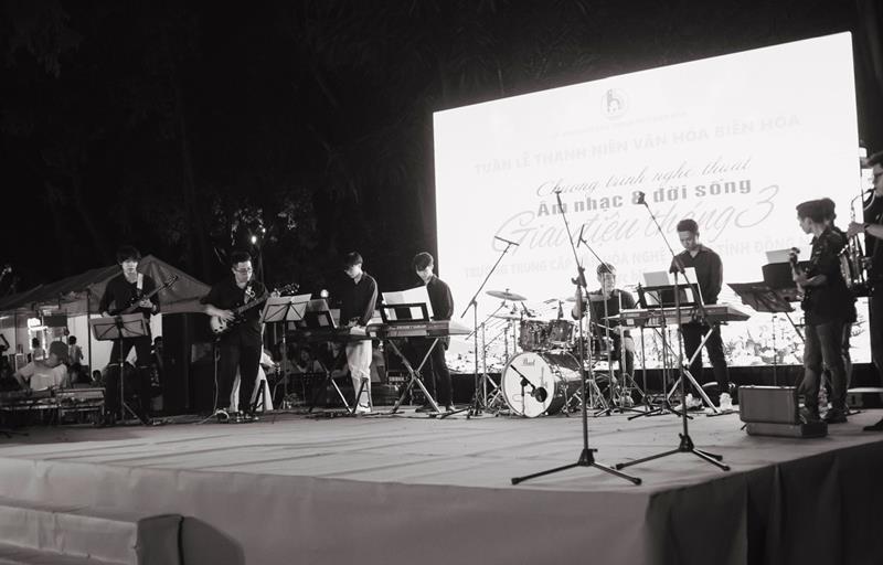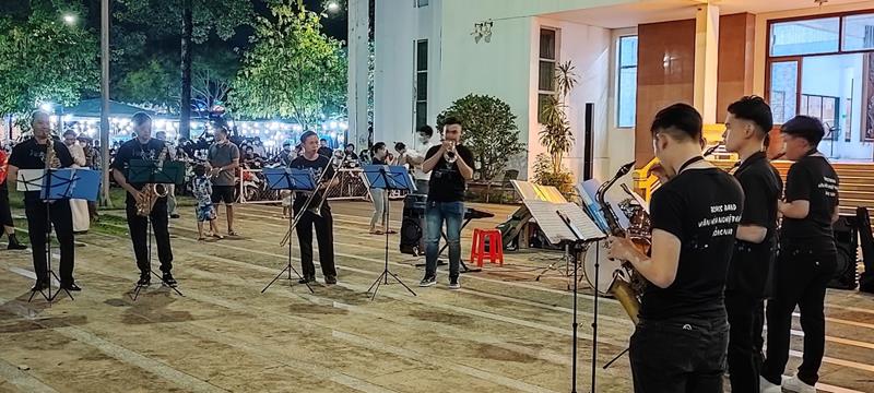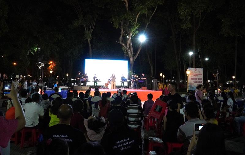 Người dân trên địa bàn thành phố Biên Hòa xem học sinh Trường Trung cấp Văn hóa nghệ thuật Đồng Nai biểu diễn âm nhạc, nghệ thuật