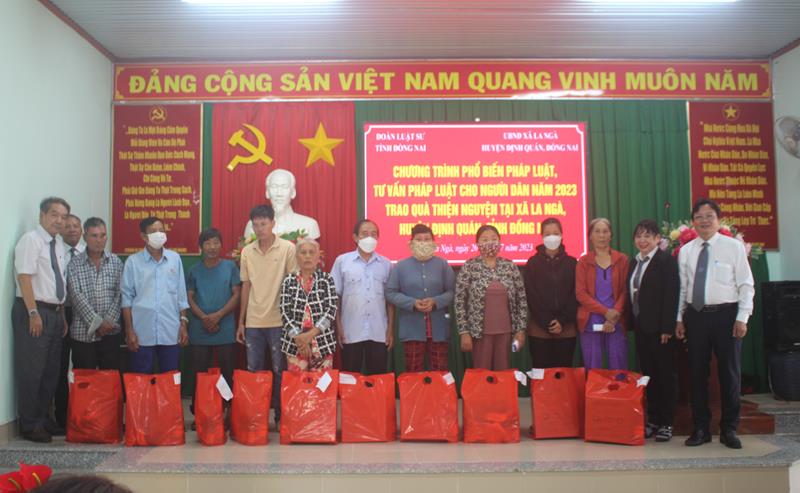 Đoàn Luật sư tỉnh tặng quà cho người dân xã La Ngà (H.Định Quán) tại buổi tuyên truyền