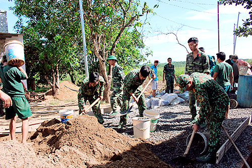 Cán bộ, chiến sĩ làm đường tại ấp Cây Cầy, xã Phú Lý, huyện Vĩnh Cửu.