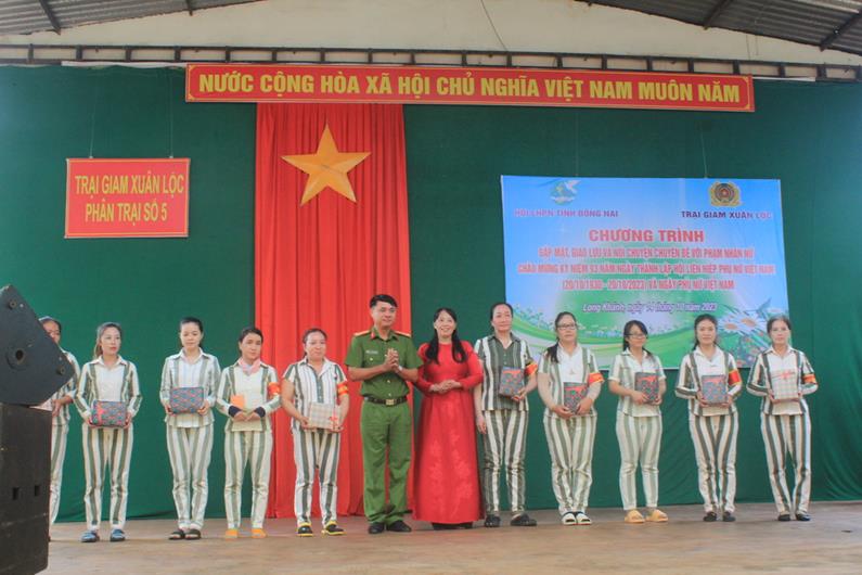 Đại diện Hội LHPN tỉnh và Trại giam Xuân Lộc trao quà cho nữ phạm nhân