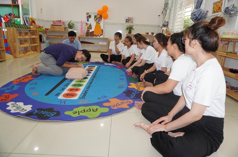 Các bác sĩ Bệnh viện Nhi đồng Đồng Nai tập huấn sơ cấp cứu cho giáo viên Trường mầm non Á Châu