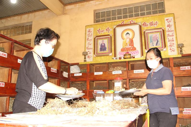 Bốc thuốc tại Phòng Chẩn trị Đông y từ thiện Tịnh xá Ngọc Uyển (phường Bửu Hòa, thành phố Biên Hòa).