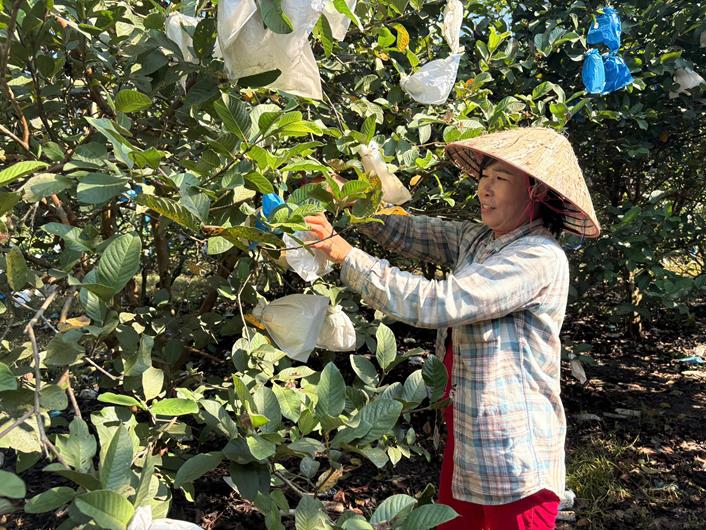 Ổi cho trái quanh năm, nên thu nhập từ cây ổi khá đều đặn. Nhờ được bao trái và chăm sóc bón phân thường xuyên, nên ổi nhà chị Thúy luôn sạch, trái ngọt, được nhiều người dân và thương lái trên địa bàn tin tưởng lựa chọn. Từ nguồn thu ổn định hàng năm, đến nay gia đình chị Thúy đã mua lại được 2 ha đất mướn ban đầu. Trong đó, toàn bộ diện tích trồng ổi được lắp đặt hệ thống tưới tiết kiệm bán tự động…