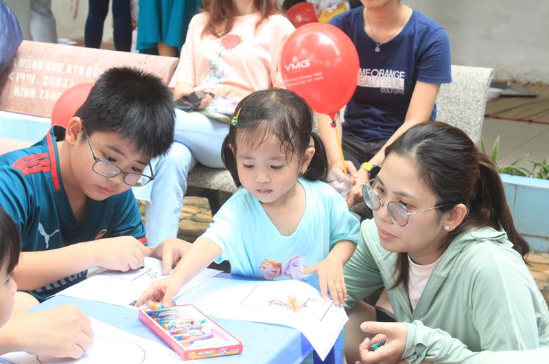 Các em thiếu nhi tham gia các trò chơi sau lễ khai mạc hè tại Nhà thiếu nhi tỉnh