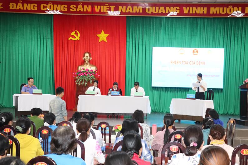 Vừa qua, Hội LHPN tỉnh đã phối hợp với Viện KSND tỉnh, TAND tỉnh, Công an tỉnh tổ chức Phiên tòa giả định về chuyên đề: Bạo lực gia đình nhằm tuyên truyền pháp luật cho phụ nữ trên địa bàn TP.Long Khánh. Nội dung kịch bản được xây dựng từ các tình tiết của vụ án có thật và theo đúng quy trình tố tụng một vụ án hình sự. Tuy nhiên, vụ án đã được ban tổ chức thay đổi một số chi tiết cho phù hợp với công tác tuyên truyền.