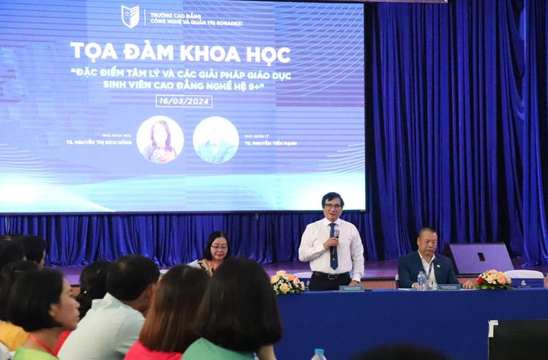 Đại diện Trường Cao đẳng Công nghệ và quản trị Sonadezi cho biết, trong hệ thống giáo dục hiện đại, đào tạo sinh viên hệ cao đẳng nghề 9+ đóng vai trò quan trọng trong việc phát triển nguồn nhân lực chất lượng cho xã hội. Tuy nhiên, để đạt được mục tiêu này, việc hiểu và đáp ứng đúng nhu cầu, đặc điểm tâm lý của sinh viên trong hệ cao đẳng nghề 9+ là một yếu tố rất quan trọng. Tọa đàm là dịp để giảng viên, giáo viên, nhân viên nhà trường cũng như các trường trung học cơ sở nắm vững được đặc điểm tâm sinh lý của sinh viên 9+ đồng thời kết nối, trao đổi kinh nghiệm trong công tác giảng dạy và quản lý để tìm ra các giải pháp nâng cao chất lượng đào tạo cho sinh viên 9+.