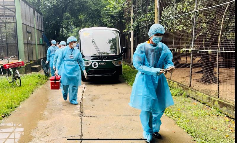 Đội ngũ cán bộ Trạm thú y Biên Hòa đến khu vực nuôi nhốt gia cầm tại khu du lịch Vườn Xoài chuẩn bị tiêm vaccine phòng dịch cúm gia cầm.