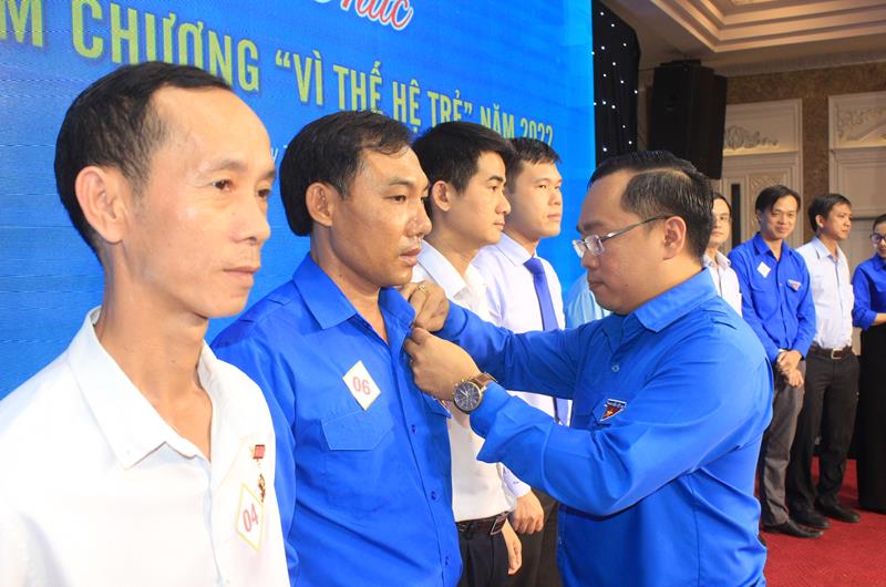 Bí thư Tỉnh đoàn Nguyễn Minh Kiên trao kỷ niệm chương cho các cá nhân