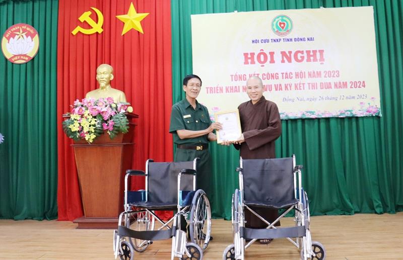 Dịp này, nhiều tập thể, cá nhân được khen thưởng các cấp vì nỗ lực hoàn thành xuất sắc nhiệm vụ năm 2023. Nhiều mạnh thường quân, nhà hảo tâm tặng xe lăn và thẻ BHYT cho cựu TNXP khó khăn, bị tật nặng.