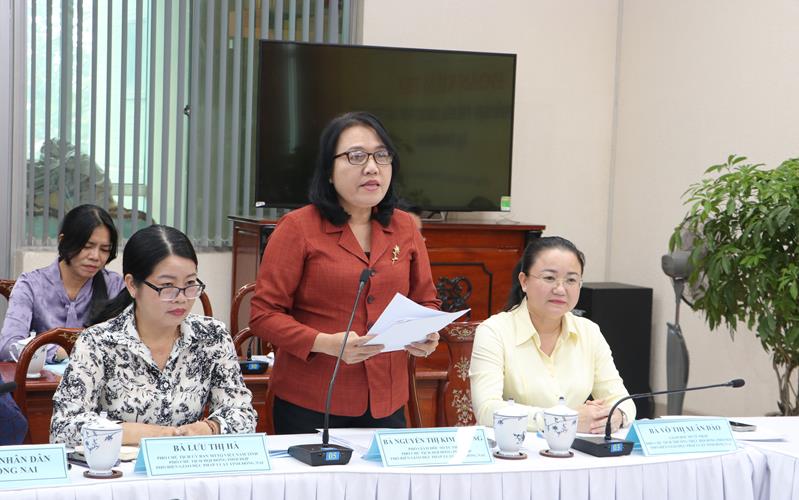 Đại diện Hội đồng phối hợp phổ biến, giáo dục pháp luật Đồng Nai báo cáo tại hội nghị.