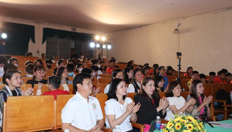 Hơn 100 khán giả là cán bộ, giáo viên, học sinh, sinh viên đã được thưởng thức 10 tiết mục ca múa nhạc đặc sắc như: tốp ca Đường lên phía trước, đơn ca Nhớ mẹ, múa đôi Nỗi đau của chúng tôi; song ca Đất nước tình yêu, Khát vọng… do các nghệ sĩ Trung tâm Văn hóa - Điện ảnh tỉnh biểu diễn.