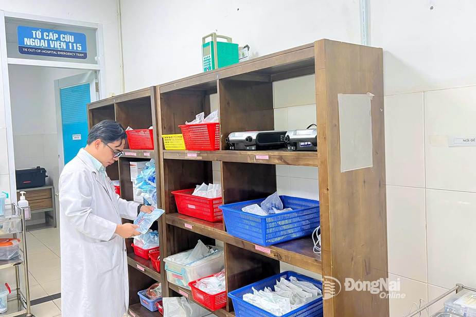 Bác sĩ Dương Hoài Vũ, Trưởng khoa Cấp cứu, Bệnh viện Đa khoa Thống Nhất kiểm tra các vật tư cấp cứu trước chuyến đi.