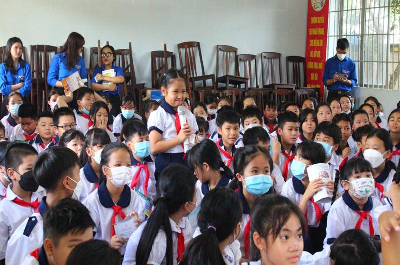 Các em học sinh giao lưu trong chương trình Hành trình bảo vệ mầm xanh tại Trường Tiểu học Hóa An, P.Hóa An, TP.Biên Hòa